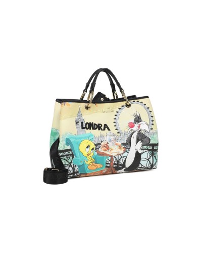 Borsa a Mano con Tracolla Donna Cartoline Londra Looney Tunes Braccialini