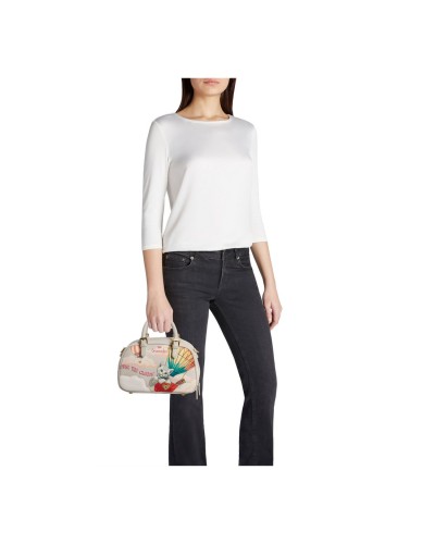 La borsa Braccialini Allround non è solo un capolavoro estetico, ma anche un esempio di praticità quotidiana. Caratterizzata da una silhouette a bauletto con doppi manici sagomati per un porto a mano raffinato, include una tracolla regolabile e removibile che offre la massima versatilità per un porto a spalla o crossbody. L'ampia apertura con zip rivela un interno spazioso e foderato, perfetto per organizzare con eleganza tutto il necessario. Le rifiniture curate e il design strutturato rendono questo modello l'accessorio ideale per chi desidera distinguersi con ironia e classe in ogni occasione.