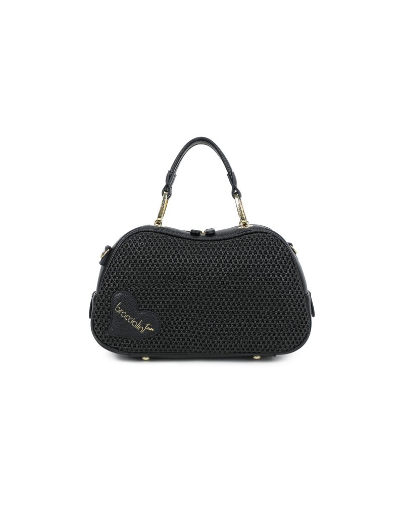 Pensata per una donna dinamica che non rinuncia allo stile, la borsa Candy offre una versatilità d'uso impeccabile: può essere portata elegantemente a mano grazie ai doppi manici, oppure a spalla e crossbody utilizzando la tracolla logata removibile e regolabile. L'interno è organizzato per ospitare l'essenziale con ordine, rendendola la compagna ideale sia per gli impegni quotidiani che per le occasioni più glamour. Il dettaglio del cuore logato Braccialini applicato sul fronte firma con prestigio questo accessorio imperdibile della collezione.