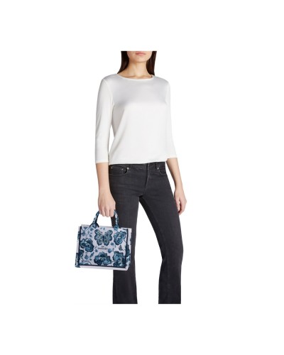 Realizzata con materiali di alta qualità e caratterizzata da una silhouette strutturata, la borsa presenta grafiche ricercate che riflettono il DNA fantasioso di Braccialini. Il design "open shape" è studiato per la massima praticità e include al suo interno una funzionale pochette rimovibile con zip, che permette di custodire in sicurezza i tuoi effetti personali o di essere utilizzata separatamente. Il doppio manico rigido permette una portabilità a mano estremamente chic, mentre la tracolla regolabile e removibile offre la massima versatilità per un uso quotidiano dinamico.