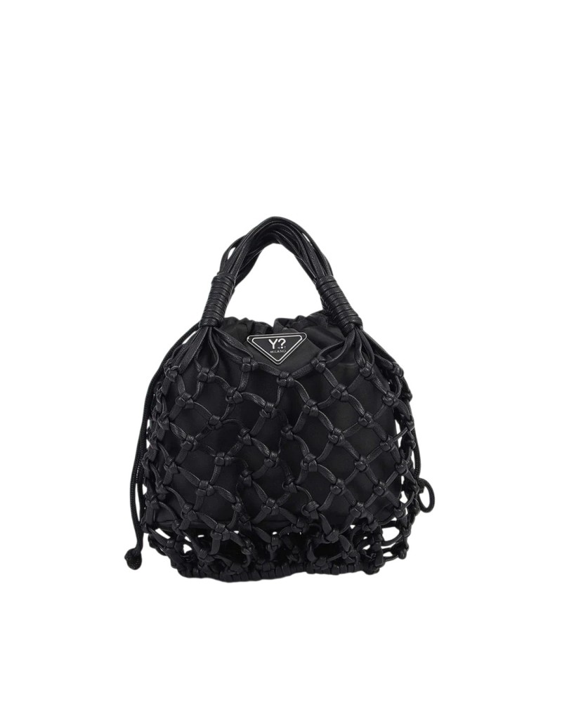 Scopri l'originalità e il fascino d'avanguardia della borsa a mano Y Not? Milano appartenente alla collezione Fanny. Questo modello si distingue per l'esclusiva lavorazione a rete con intreccio a nodi, che crea un effetto visivo dinamico e sofisticato. Il design è completato da un pratico secchiello interno in tessuto, che non solo protegge i tuoi oggetti personali ma crea un elegante contrasto di texture, rendendo questa borsa un vero pezzo iconico della stagione.