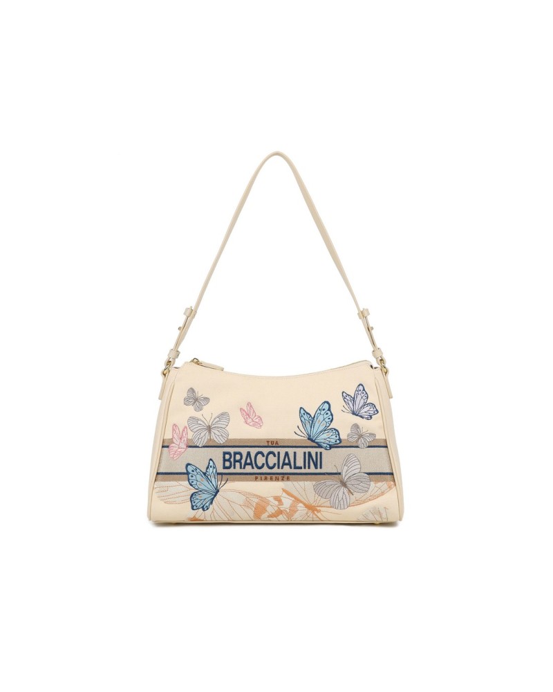 Aggiungi un tocco di poesia al tuo guardaroba con la borsa sacca donna Jacquard Braccialini, un accessorio che incarna l'essenza della femminilità e dell'eleganza creativa. Questo modello si distingue per la sua pregiata lavorazione in tessuto jacquard ricamato, impreziosito da delicati motivi di farfalle che evocano la freschezza e la libertà della natura. La silhouette allungata ed essenziale conferisce a questa borsa a spalla Braccialini un design contemporaneo, perfetto per chi cerca un accessorio distintivo e di classe.