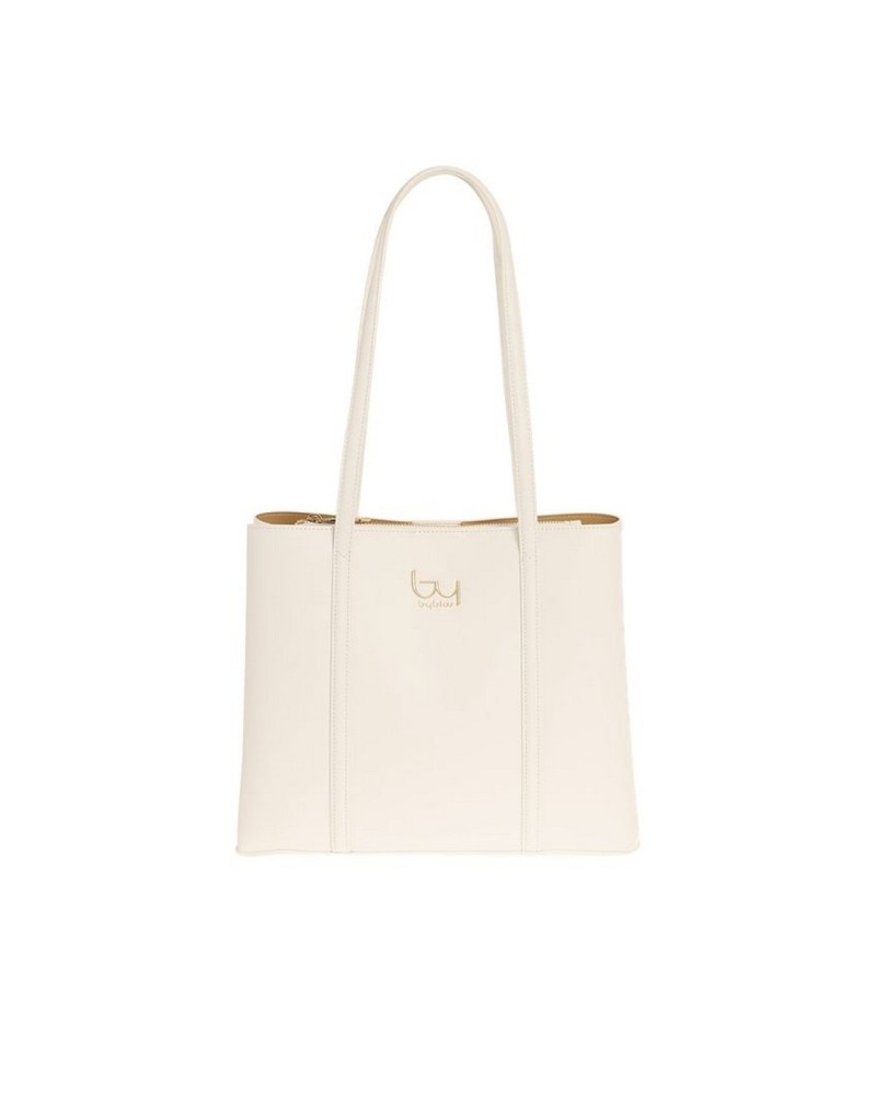Realizzata in materiale sintetico di alta qualità con una raffinata grana superficiale, la borsa è costruita per durare nel tempo e resistere all'uso intensivo. I doppi manici lunghi sono studiati per offrire il massimo comfort durante il trasporto a spalla, permettendo una libertà di movimento totale. Il design è impreziosito dal logo metallico Byblos e da eleganti cuciture a vista che ne esaltano la cura artigianale.