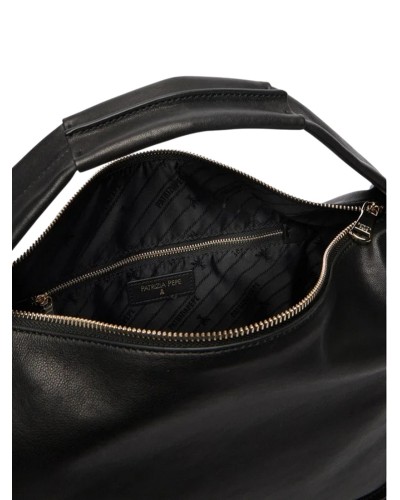Realizzata in pregiata pelle sintetica con una texture sofisticata, questa borsa hobo presenta un design contemporaneo impreziosito dal logo Patrizia Pepe in rilievo, che ne certifica l'autenticità e il prestigio. La struttura è progettata per essere indossata comodamente a spalla grazie al manico integrato ergonomico, rendendola la compagna ideale per le giornate in ufficio, lo shopping o il tempo libero.