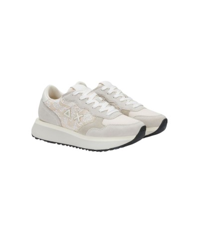 Le sneakers Sun 68 Big Ally Flower Mash sono la sintesi perfetta tra femminilità e design contemporaneo. Caratterizzate da un'estetica ricercata, queste calzature si distinguono per la raffinata tomaia impreziosita da un delicato motivo floreale ricamato, che conferisce un tocco romantico e distintivo al classico stile sporty-chic del brand.