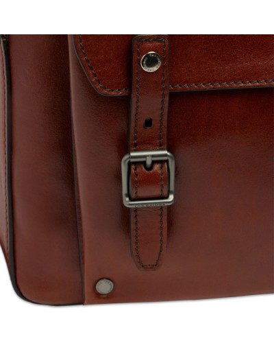 Lo zaino uomo The Bridge della linea Galileo rappresenta l'eccellenza della pelletteria italiana, unendo un design classico e rigoroso a una funzionalità pensata per le sfide della vita moderna. Realizzato interamente in pregiata pelle di vacchetta conciata al vegetale, questo zaino sviluppa nel tempo una lucentezza e una personalità uniche, tipiche dei prodotti artigianali di alta qualità Made in Italy.