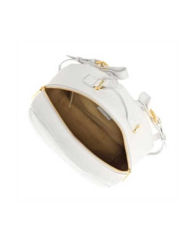 Realizzato in materiale sintetico di alta qualità con una texture raffinata e durevole, lo zaino presenta una silhouette armoniosa e semirigida che mantiene la sua eleganza anche a pieno carico. Gli spallacci regolabili permettono un fit personalizzato e una distribuzione ottimale del peso, mentre il manico superiore offre una pratica opzione di trasporto a mano. Il look è completato dal logo metallico Byblos applicato sul fronte, segno distintivo di un'estetica curata e moderna.