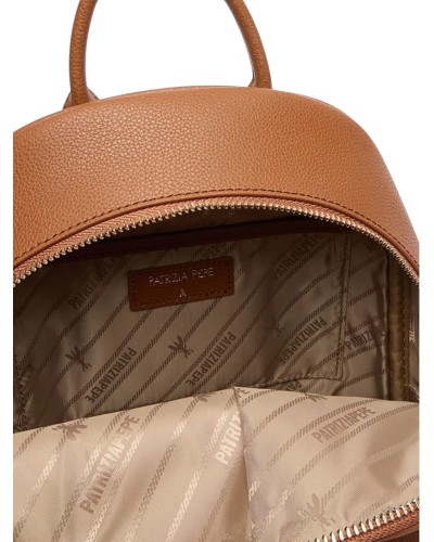Realizzato in pregiata pelle martellata, il modello si distingue per la sua resistenza e per la texture piacevole al tatto. Il design minimale è impreziosito dal logo Patrizia Pepe e dall'iconico simbolo Fly in metallo dorato applicati sul fronte, che ne certificano l'autenticità e il prestigio. Grazie agli spallacci sottili regolabili e al pratico manico superiore, lo zaino garantisce un comfort eccellente e una versatilità d'uso impeccabile.