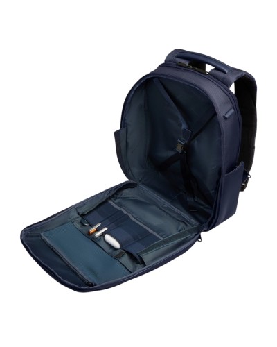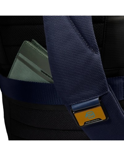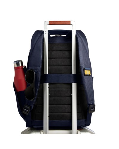 L'organizzazione interna dello zaino Piquadro è studiata nei minimi dettagli: dispone di uno scomparto imbottito specifico per notebook fino a 14" e tablet, assicurando che i tuoi dispositivi elettronici siano sempre al sicuro. La tasca frontale ad accesso rapido e i vari comparti interni permettono di gestire con ordine caricatori, documenti e oggetti personali. Completano il profilo tecnico lo schienale traspirante con fascia per l'aggancio al trolley e gli spallacci regolabili, progettati per distribuire il peso in modo ottimale e garantire un comfort superiore durante tutto il giorno.